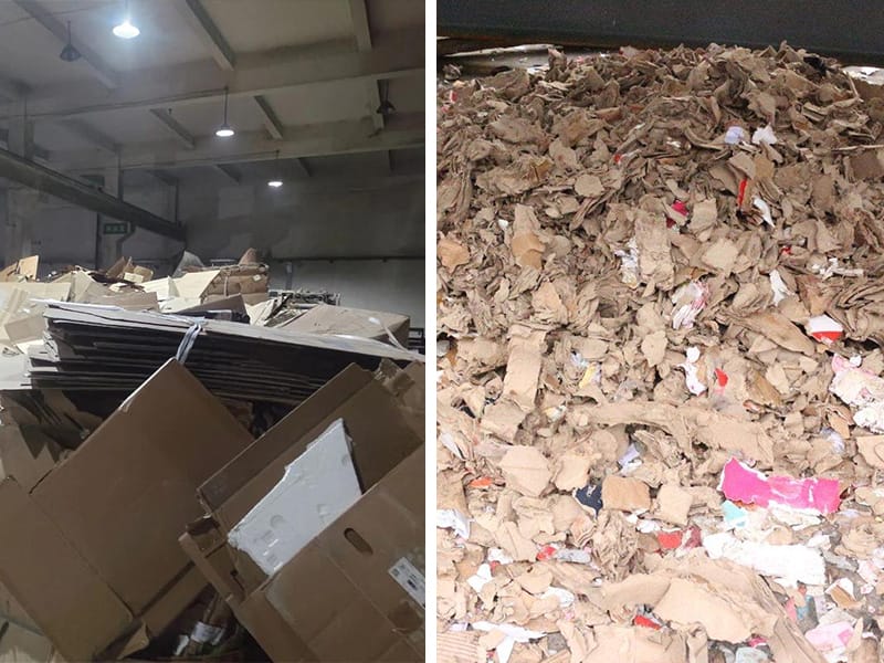The material enters the shredding box through the feeding system. The box is equipped with shredding blades. The material is shredded into small pieces by the shredding blades, which are then discharged from the bottom of the box.