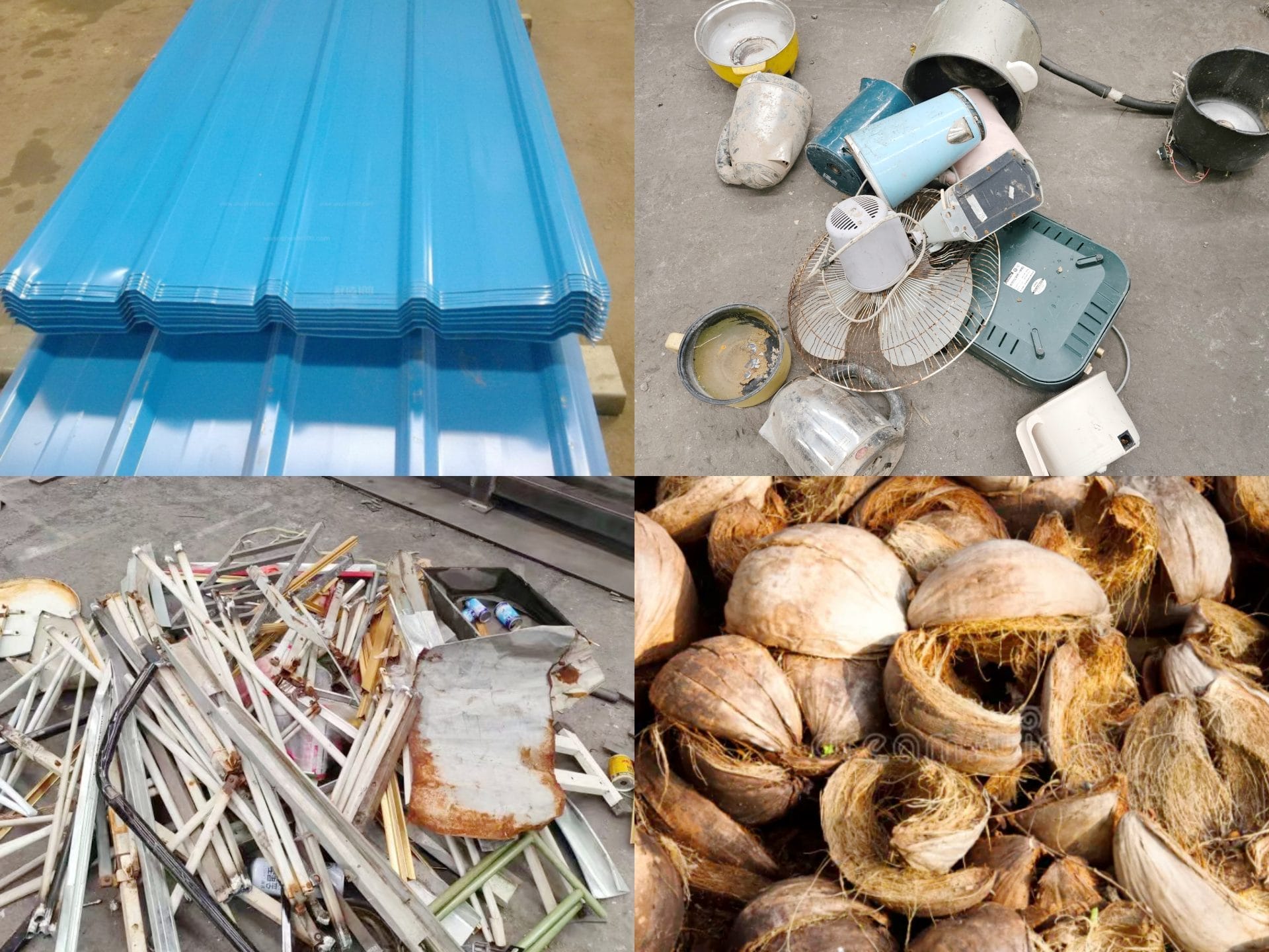 Suitable materials: cans, paint buckets, iron buckets, scrap iron, iron sheets, bicycles, motorcycles, automobiles, color steel tiles, lightweight materials, pig iron, thin iron, refrigerators, air conditioners, waste household appliances, metal scraps, aluminum alloys, broken bridges, plastic steel doors and windows, tires and wood.